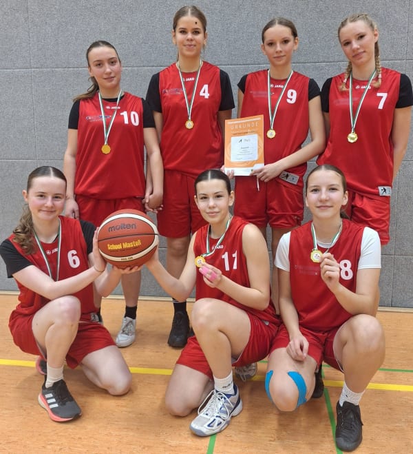 Finja und Natalie Reinhardt (beide 10/1), Nele Gerstner, Charlotte Cichowicz (beide 9/3), Milli Barnick (9/2), Hermine Nolde und Melina Stein (beide 8/1) nahmen am 4. Dezember 2025 erfolgreich am Basketball-Regionalfinale des Bundeswettbewerbs „Jugend trainiert für Olympia“ in der Wettkampfklasse U18 im Gymnasium Coswig teil.